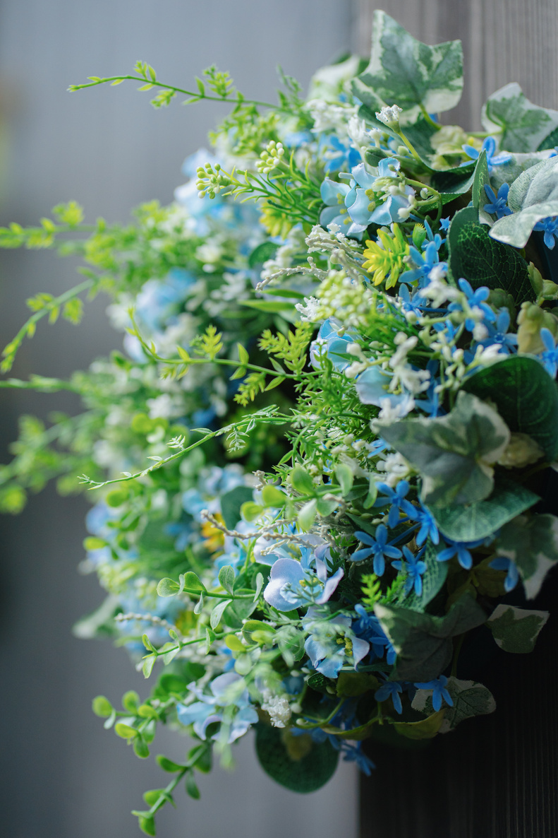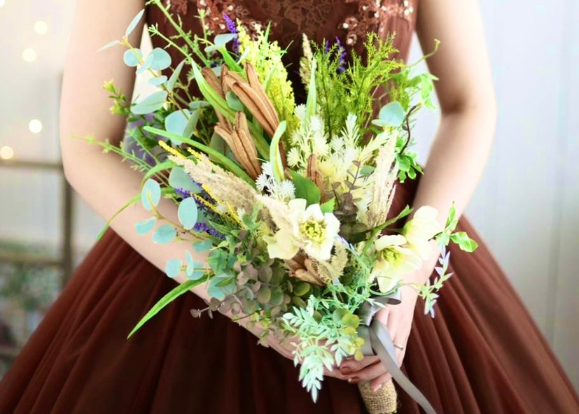 安価に販売されている造花とは一線を画します。ナチュラルなその見た目からウェディングに使われることが多くなりました。美しさから言えば生花には及びませんが、早くから準備できるので前撮り写真にも使え持ち運びにも便利です。式が終われば玄関やリビングに飾ることができて長く楽しんでいただけます。