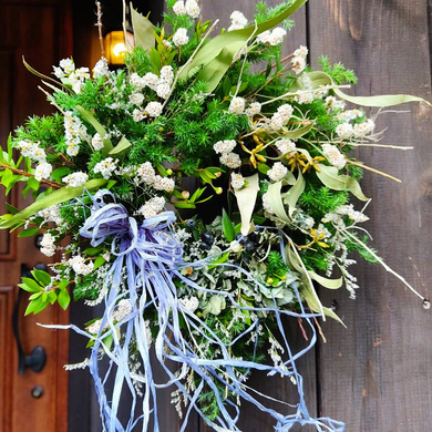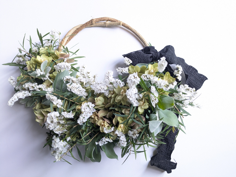 ドライフラワーのリースやスワッグなどのワークショップや、アーティフィシャルフラワー(高級造花)の作品の展示販売をしています。庭の木々や季節の花に囲まれた空間で、花とあそぶ時間をお楽しみください。