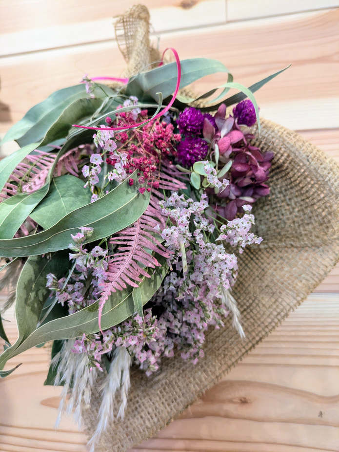近年ドライフラワー人気が高まり、ドライフラワーの種類もワイルドフラワー系まで随分多くなっています。