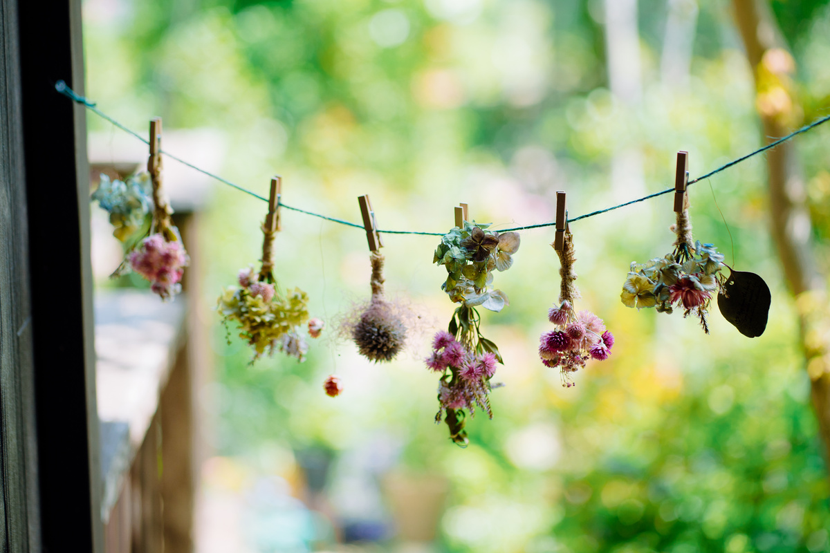 関東に住んでいた頃、あるカントリー雑貨店に出会いました。まだドライフラワーの認知が低かった頃の話です。そこに飾ってあったドライフラワーのアレンジにときめいて、教室に通い基礎からブーケまで、そしてドライフラワーに限らず蔓かごの編み方や造花のアレンジまで教わりました。当時は転勤のため初めての関東で乳幼児3人を抱えて寝る暇もありませんでしたが、花を触っているときの楽しさや癒しが私の心を支えていたように思います。