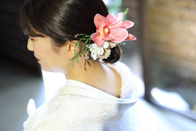 和装洋装ともに花嫁様が美しく引き立つ花飾りをご提案致します